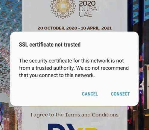 [st-cmemo fontawesome=”fa-exclamation-circle” iconcolor=”#919191″ bgcolor=”#fafafa” color=”#000000″ iconsize=”100″]エラーについて解説すると細かくなりますが、このWi-Fiが一般的な証明書機関から取得していない証明書を使っているために出るものと思われます。セキュリティ的に心配な方は接続しないようにしましょう[/st-cmemo]